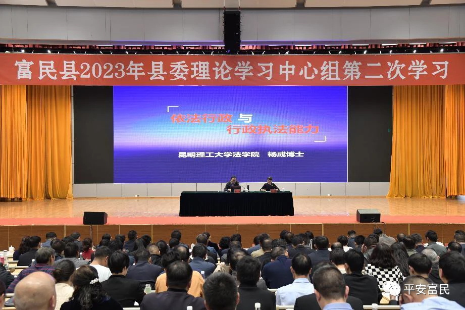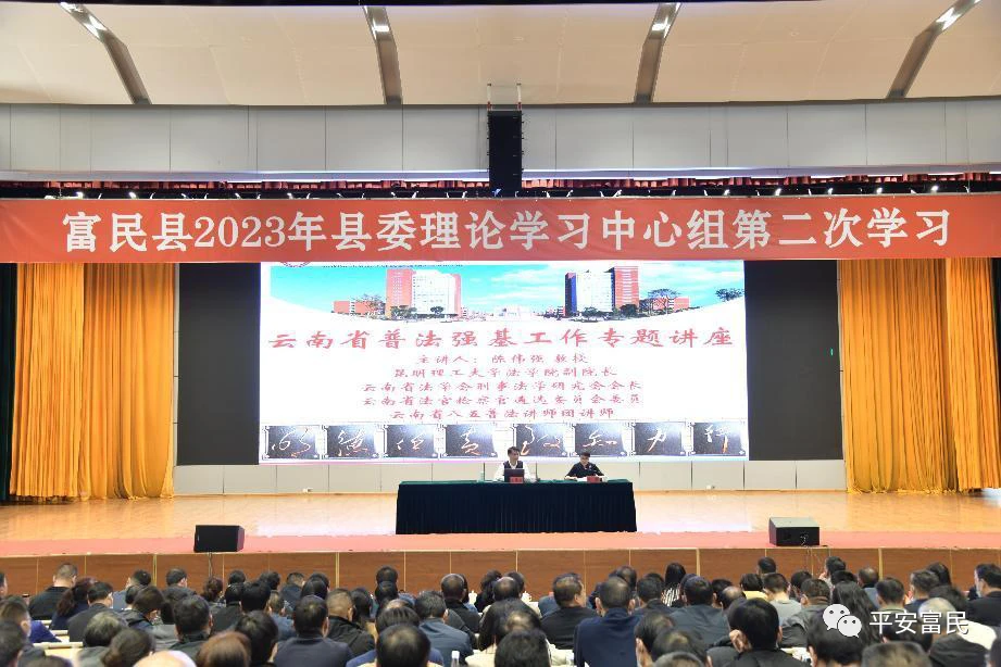 为认真落实昆明市富民县普法强基补短板专项行动工作,3月10日,富民县法学会组织会员150人,参加富民县2023年县委理论学习中心组第二次学习会议,开展“普法强基补短板专题辅导”专题培训。县委书记主持会议,并作讲话。