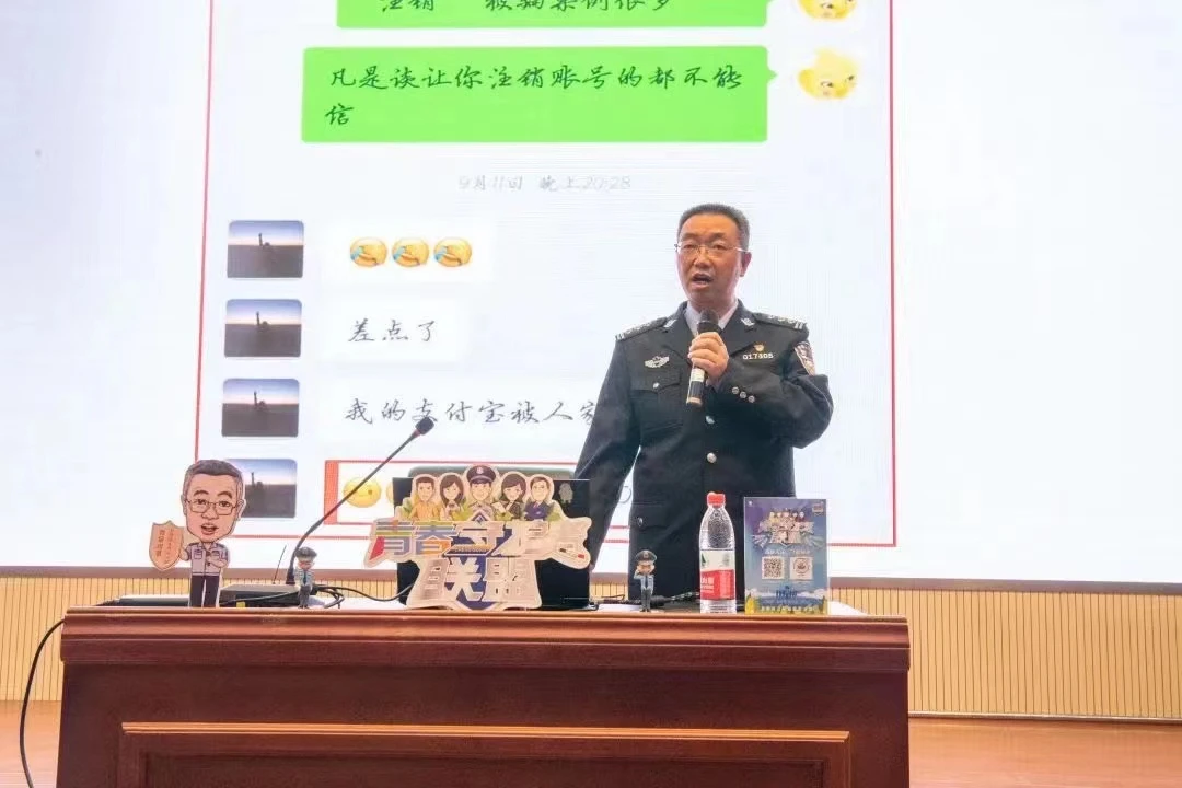“青春守护者联盟”普法宣讲小分队活动第一站,云南师范大学能源与环境科学学院,党委副书记向泰、呈贡分局党委委员、政工室主任王晓云、呈贡区法学会相关人员以及100余名师生参加了普法宣讲活动。活动中,普法宣讲小分队民警以案释法,以法论事,以事育人,为在校师生提供了一堂切合生活、学习、工作实际的“开学第一课”。大学城反诈“辉哥”结合自身从警工作经历,讲述电信网络诈骗的现状,列举常见的诈骗手段,提醒大家牢记“三不”:不听、不信、不转账。网安大队民警郑坤结合案例,从安全规范上网、自觉抵制网络不良言行等方面与师生进行了交流,并随堂开展了“开学第一课”手机在线测试,测试成绩较好的同学现场抽取了呈贡警方系列文创小礼品。此次活动获得了现场师生的一致好评。