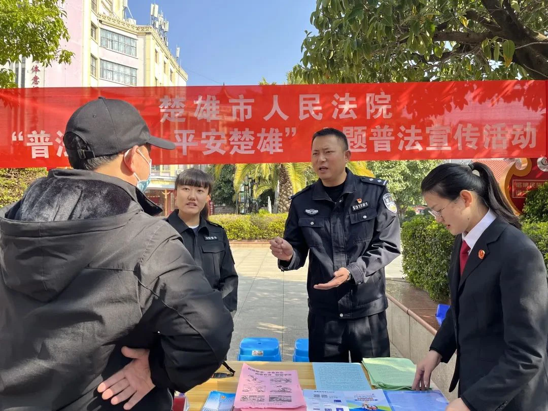 楚雄市法院把“普法课堂”搬到广场公园、把宣传资料送到群众手里,接地气地进行法律法规讲解,引导广大群众尊法学法守法用法。