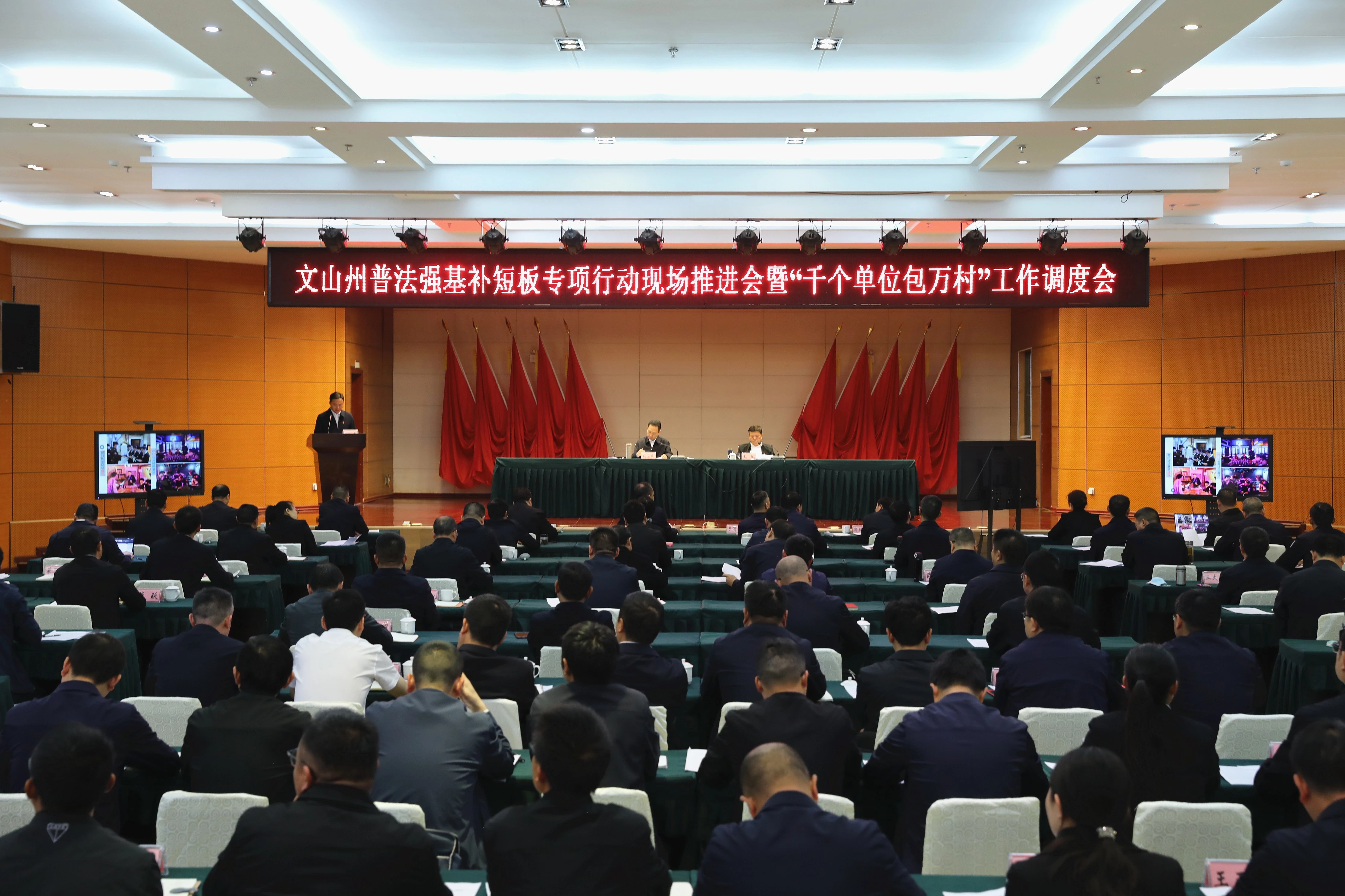 3月22日上午,文山州普法强基补短板专项行动现场推进会暨“千个单位包万村”工作调度会在丘北县召开。文山州州委常委、政法委书记、法学会会长赵卫东出席会议并讲话,文山州法学会会员、州人民检察院检察长赵斌主持会议。