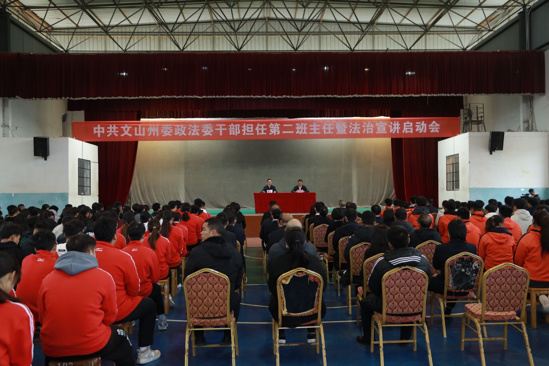 自文山州普法强基补短板“千名干警挂万班”推进会召开后,近日,文山州法学会会长赵卫东深入文山州体育职业学校召开州委政法委干部担任第二班主任暨法治宣讲启动会议,并带头到所挂包班级履行“第二班主任”职责,为全体师生上法治教育课。