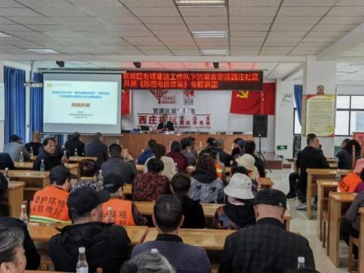 区第七专项普法工作队下沉官渡街道西庄社区开展防范电信诈骗专题培训讲座,邀请法学会理事、法律专家团队成员刘栗宏为大家授课,社区两委、调委会、“法律明白人”等70余人参加。刘栗宏律师以如何防范电信诈骗为切入点为参加培训的人员进行了精彩的讲解,给大家传授识破诈骗的技巧和应对诈骗的方法,还向大家推荐国家反诈中心APP,鼓励大家加强学习,在日常生活中提高警惕。通过此次培训,进一步提升了社区基层普法人员“普法强基补短板”工作的能力与水平,为提升普法工作质效、维护群众合法权益奠定了坚实的基础。