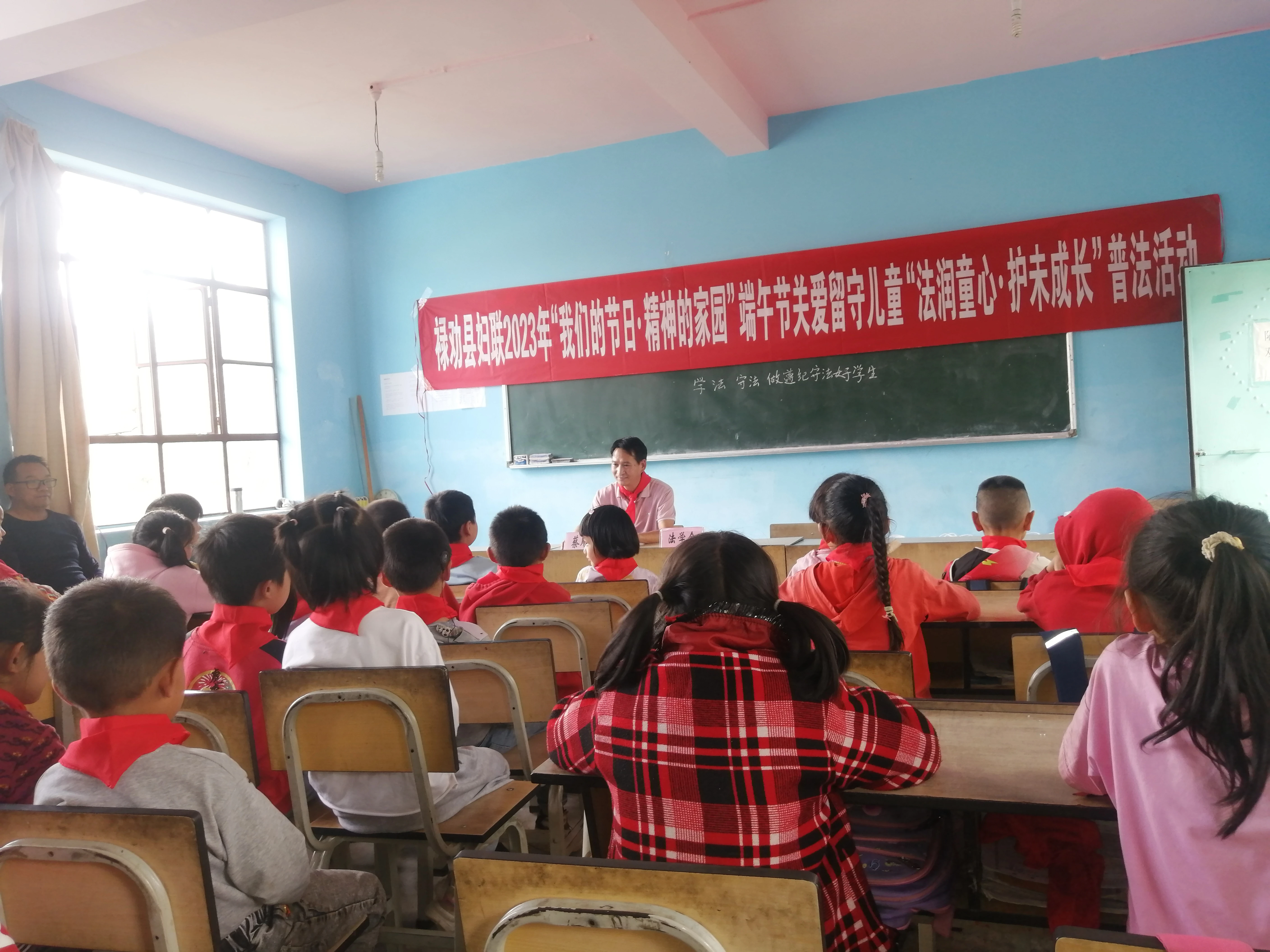 为切实维护未成年人合法权益,增强未成年人法治观念,提高未成年人法律意识以及自我保护意识,预防未成年人违法犯罪。6月15日,昆明市禄劝县法学会联合县妇联以传统节日端午节为契机,深入茂山镇东屏小学开展关爱留守儿童“法润童心·护未成长”进校园志愿服务活动。县法学会专职副会长、秘书长蔡顺存、县妇联副主席李玉银、茂山镇相关领导、东屏小学学生、巾帼志愿者共 46人参加了活动。