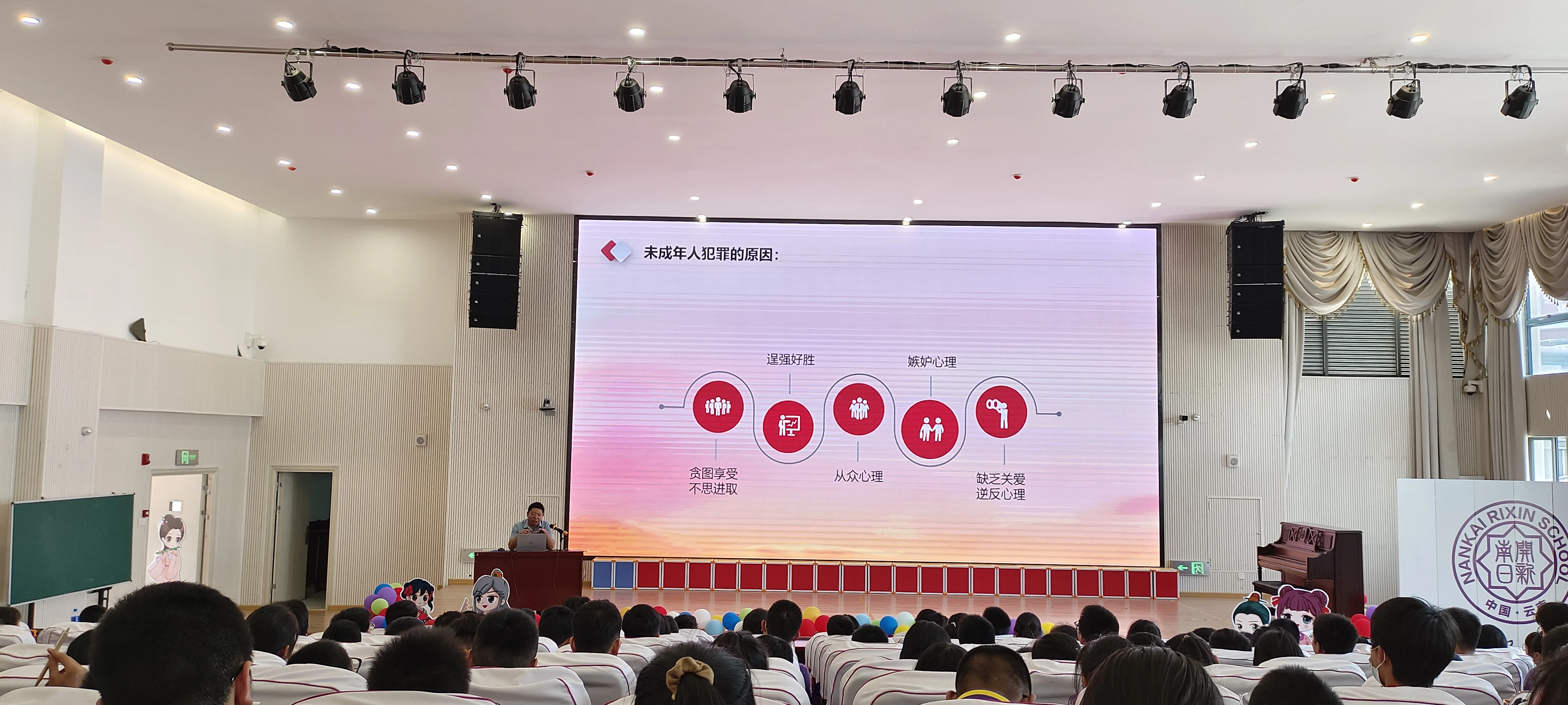 为进一步加强对青少年的法治教育,帮助学生养成尊法学法守法用法的习惯,增强青少年自我保护和安全防范的意识、能力,6月15日,昆明市官渡区法学会联合官渡区司法局吴井司法所到吴井街道四O三厂社区南开日新学校,开展预防未成年人犯罪法治专题讲座。