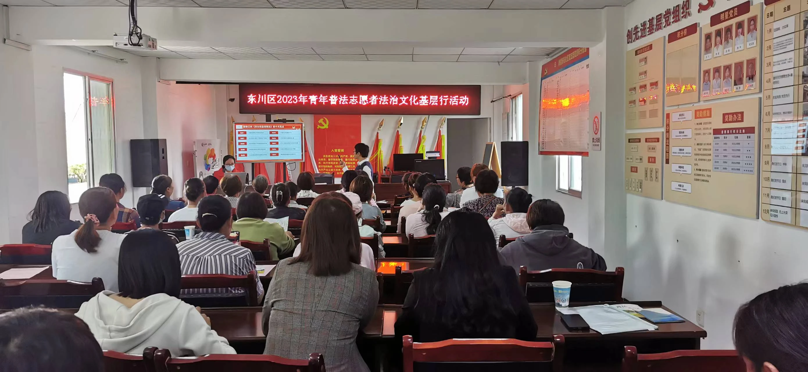为进一步加大对妇女群体的法治宣传教育力度,增强妇女群体依法维护自身权益的意识,6月16日上午,昆明市东川区法学会走进碧谷街道新街社区,开展以“妇女权益保障法十大亮点”为主题的法治文化基层行宣讲活动。活动邀请区妇联副主席张正翎进行授课,共计50余名妇女群众参加。