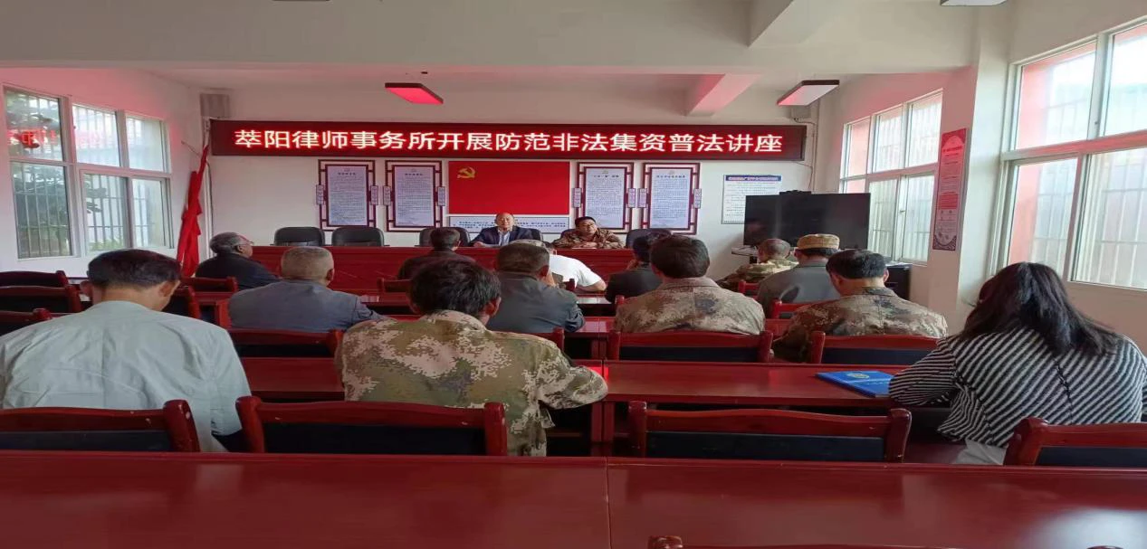 律师送法进村组。云南萃阳律师事务所主任杨兴明利用律师担任村(居)法律顾问优势到转龙镇腊乌卡村委会开展防范非法集资普法讲座,律师结合办理的真实案例以案释法,详细讲解非法集资犯罪的社会危害性和造成的法律后果,紧扣群众关于非法集资的知识盲区、认识误区和受骗重灾区,提醒群众在日常生活中要增强风险辨别能力,坚持做到不轻易相信所谓的高息“保险”、高息“理财”,高收益意味着高风险;要通过正规渠道购买金融产品,树立正确的投资理财观念,自觉远离和抵制非法集资等经济犯罪活动,守好自己的“钱袋子”。