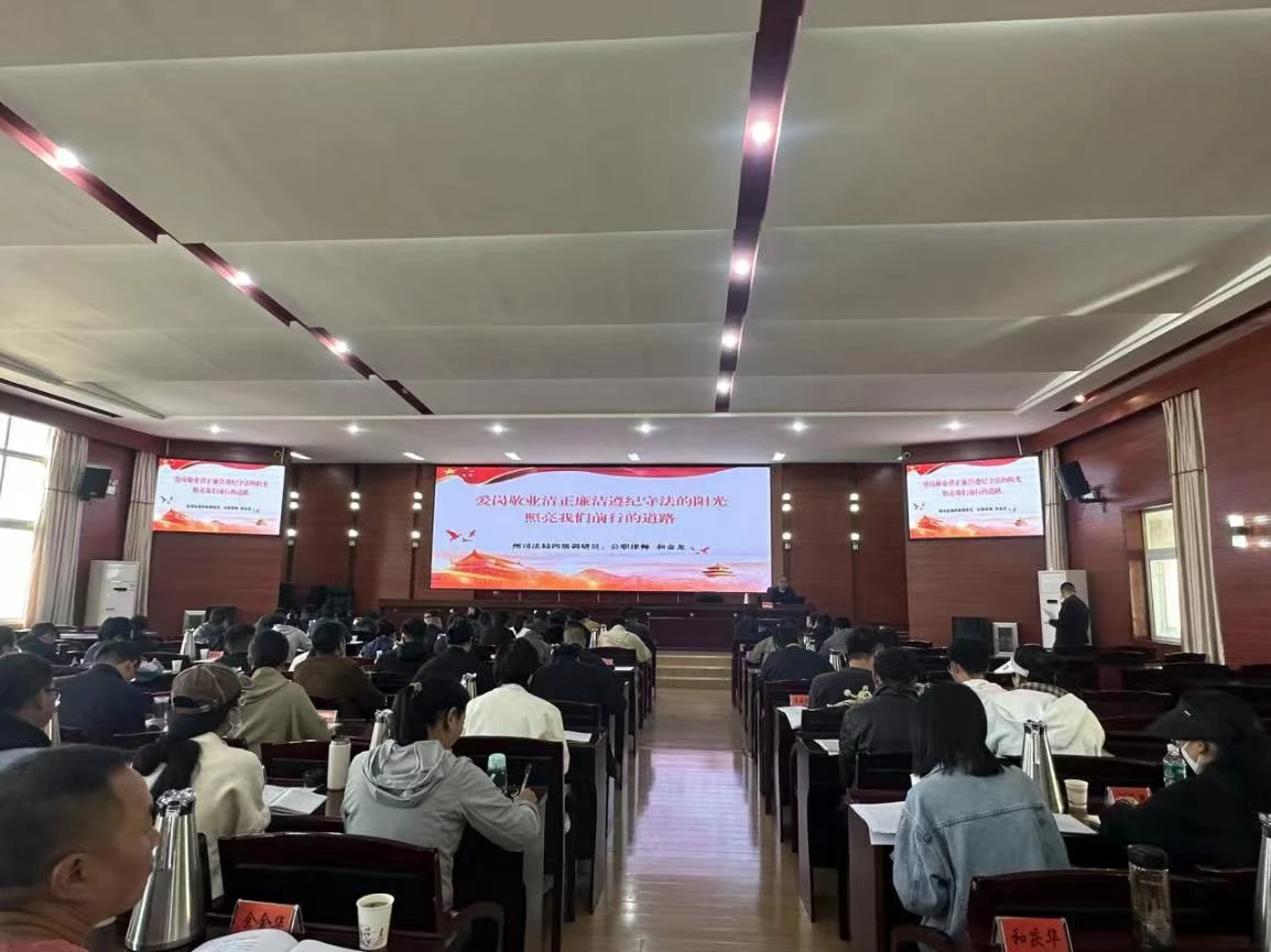 应州委党校邀请,州法学会派出法学会会员、公职律师和金龙为参会学员开展了一堂法治讲座。在100分钟的活动中,和金龙以《爱岗敬业清正廉洁的阳光照亮我们前行的道路》为题通俗易懂、深入浅出的讲授了习近平法治思想、《中华人民共和国刑法》等相关法律知识。呼吁全体学员以一棵树的姿态,根植于雪山峡谷,不畏艰辛;坚持“法定职责必须为、法无授权不可为”的依法行政理念,勇于负责、敢于担当,坚决纠正不作为、乱作为,坚决克服懒政、怠政,坚决惩处失职、渎职,警钟长鸣,提高大家思想觉悟和法律意识,进一步端正爱岗敬业、清正廉洁的从政态度,筑牢拒腐防变的思想防线;以“信念坚定、为民服务、勤政务实、敢于担当、清正廉洁”为工作指引;以“敢为人先、勇于探索、和谐共处、积极向上、自信坚毅、勇于挑战”的精神铸就人生格局。