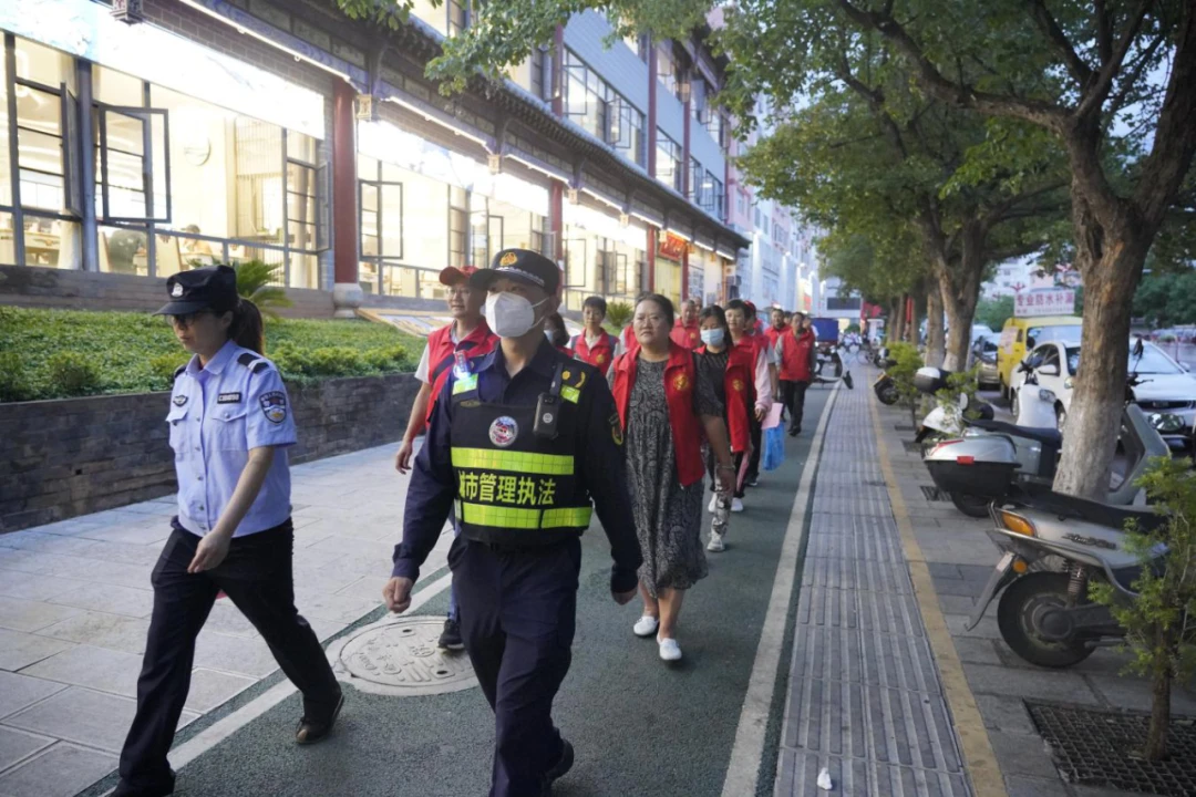 为全面深化平安楚雄建设,充分发挥中国法学会会员、普法志愿者在平安楚雄建设中的生力军作用,近期,在楚雄市委政法委牵头下,楚雄市法学会、市公安局、市市场监督管理局、市城管局、市文旅局、州生态环境局楚雄市分局配合下,楚雄市开展平安志愿者夜巡服务活动,鲜艳的“红马甲”点亮了楚雄市夜晚的平安灯。