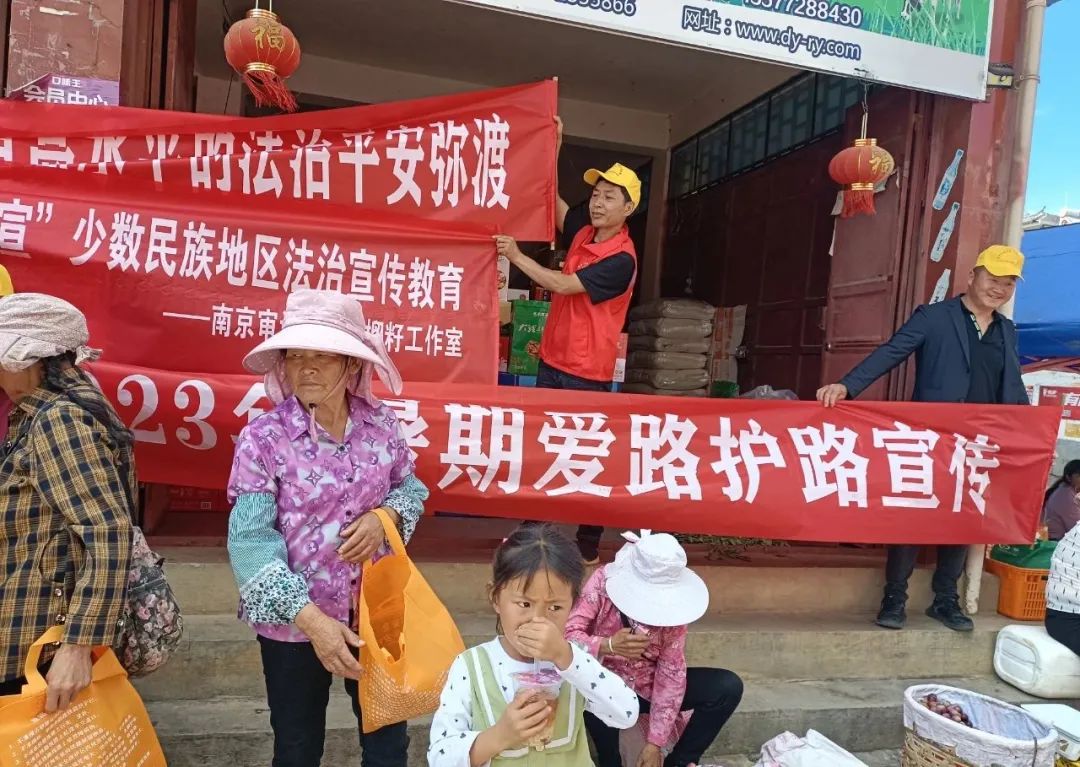 近日,大理州弥渡县委政法委、县法学会组织县人民检察院、县交运局到红岩镇吉祥街开展2023年暑期爱路护路宣传活动。结合全县普法强基补短板专项行动,组织义务护路队员、邀请普法办工作人员、南京审计大学暑期大学生服务团开展爱路护路普法宣传,并进行汛期铁路安全联合巡查。