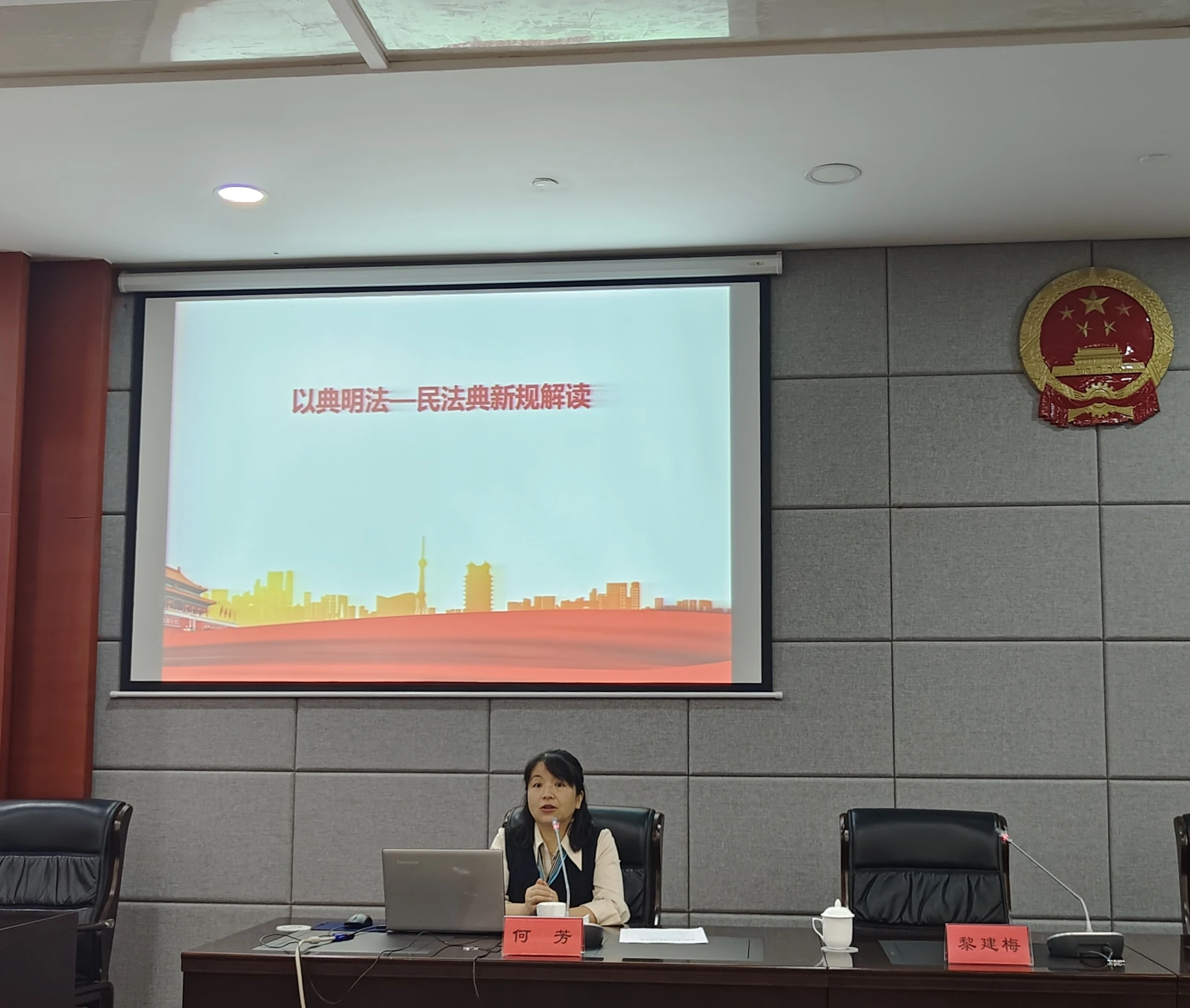 本次培训邀请云南省委党校法学教研部教师、云南省高级人民法院法官学院师资库教师、云南省贸促会南亚东南亚法律专家委员会专家何芳进行授课。何芳围绕“以典明法——民法典新规解读”为主题进行了深入细致的讲授,从民法典编纂的历史回顾出发,深入讲解民法典六大方面的制度创新,包括总则部分、物权制度、合同制度、婚姻家庭继承编、人格权与侵权责任,讲授内容主题鲜明、重点突出、案例丰富。