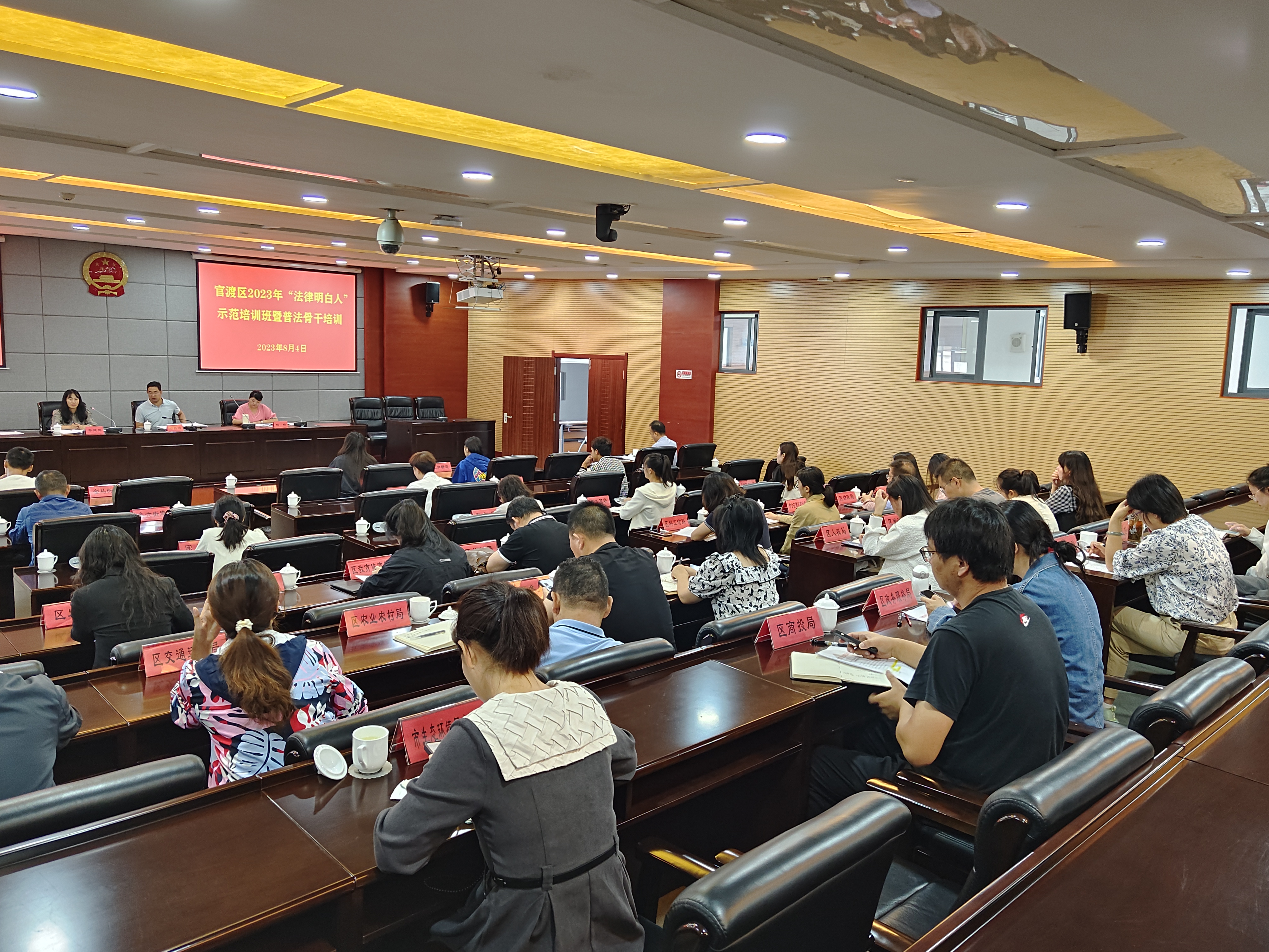 为着力提升全区“法律明白人”和基层普法骨干的法律意识和法治素养,推动“八五”普法工作走深走实,近日,昆明市官渡区法学会、区司法局、区普法办,联合举办了2023年“法律明白人”示范培训班暨普法骨干培训,法治建设成效考核的部门普法骨干、街道“法律明白人”代表等40余人参加了培训。