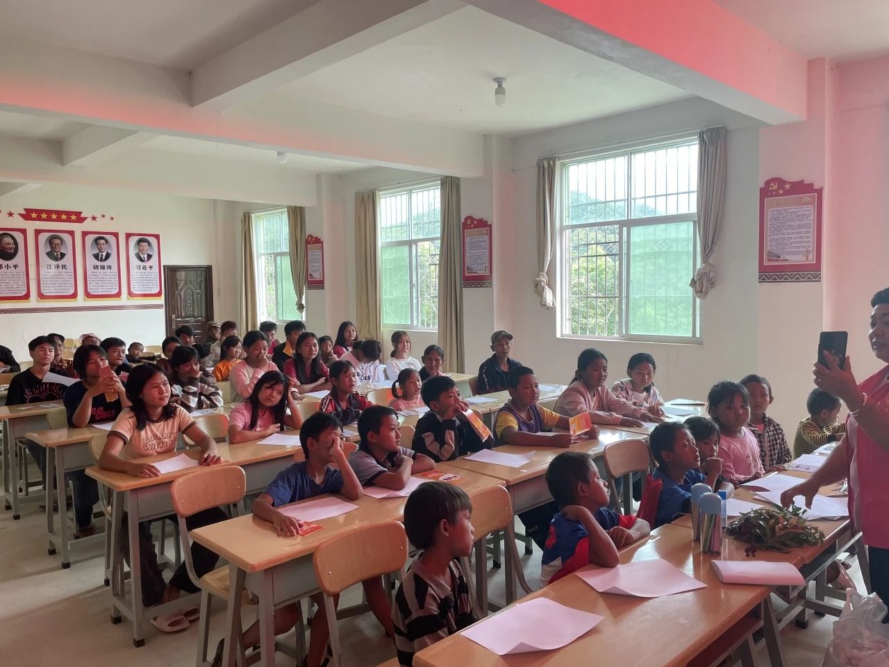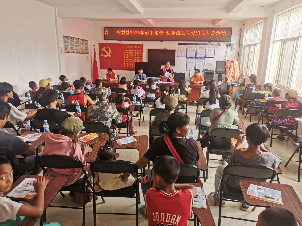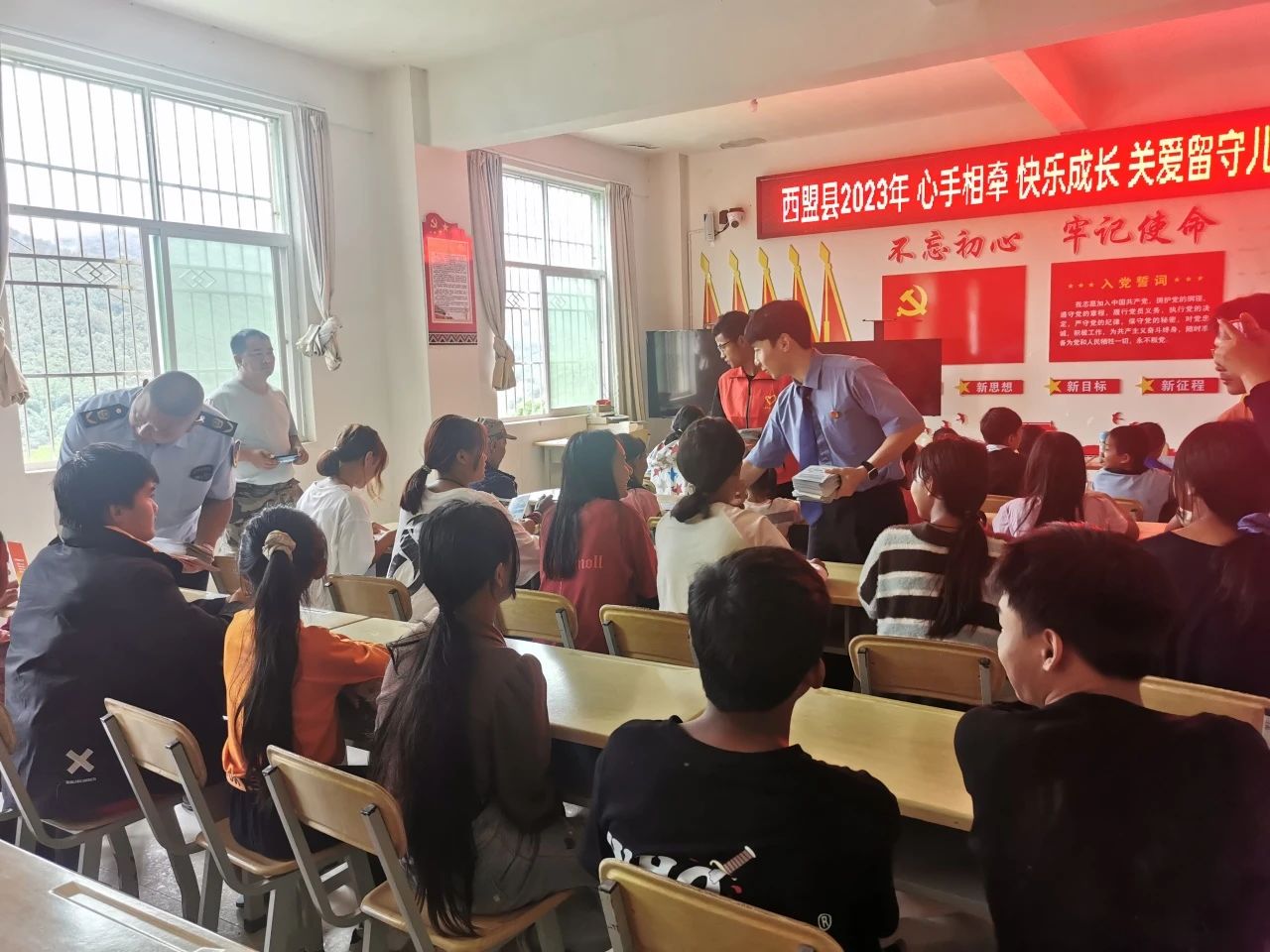 为深入推进未成年人法治教育工作,提高留守儿童法治意识和自我保护能力,护航未成年人健康成长。近日,普洱市西盟县人民检察院未检团队联合团县委、县妇联等单位,开展关怀留守儿童活动。县检察院的青年普法志愿者走进抵边村寨,为50余名留守儿童宣讲法律知识。