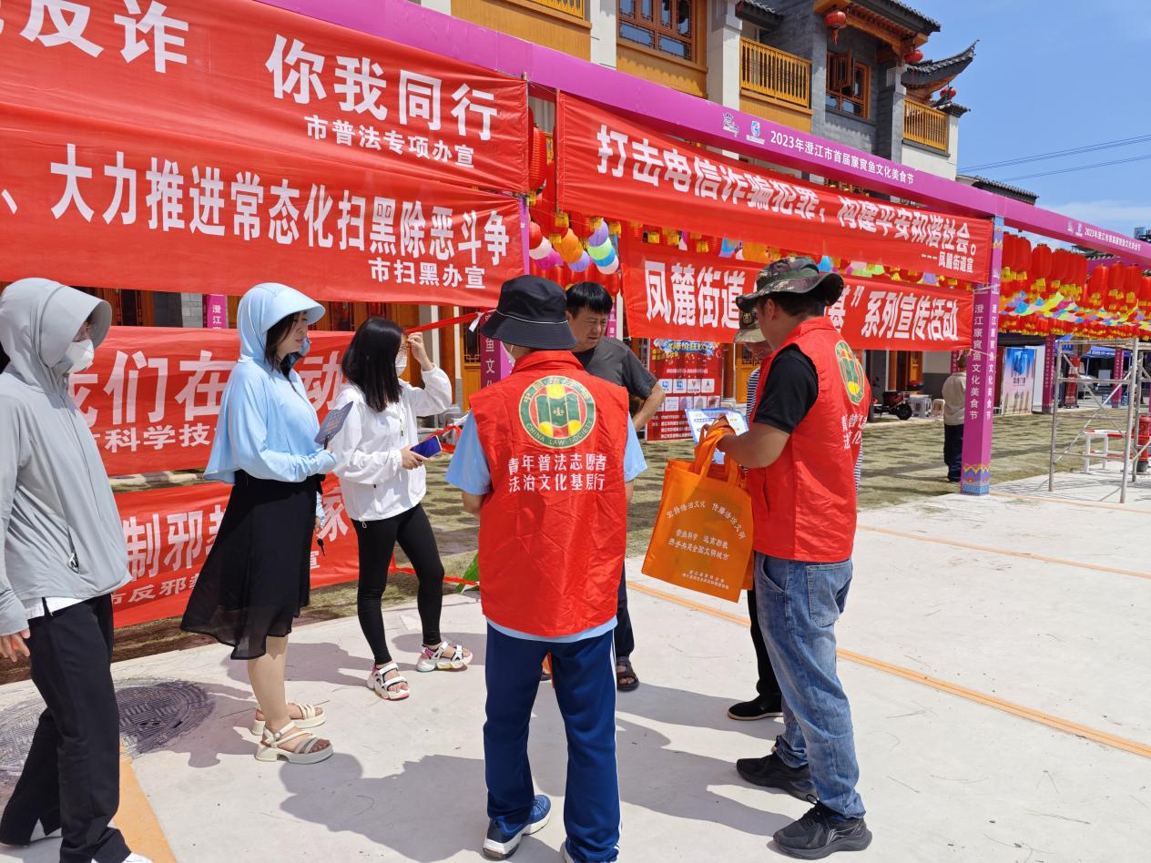 活动现场,通过拉横幅、讲案例、发放宣传资料等方式,向过往群众、摆摊商贩开展普法宣传。青年普法志愿者们用接地气、听得懂、悟得透的方式分别宣传讲解了《民法典》《法律援助法》《未成年人保护法》《反有组织犯罪法》《禁毒法》《信访工作条例》等法律法规以及与群众密切相关的电信诈骗、养老诈骗、反邪教、防毒禁毒等方面的法律知识,并通过发放宣传手册、宣传物品、提供法律咨询、知识问答等方式,结合工作实践中的具体案例用通俗易懂的语言详细地向现场群众宣传法律知识。