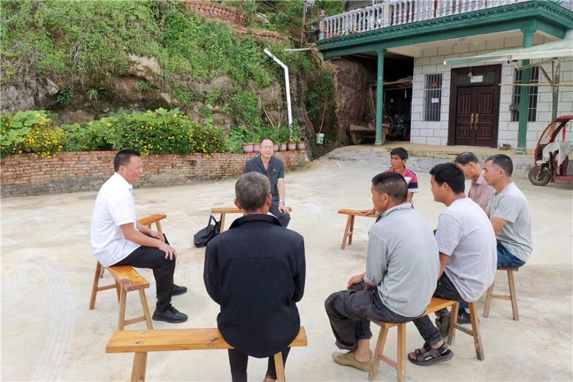杨明首先听取了仁和镇人大何达斌主席对前期普法强基工作的简要汇报,并与村干部进行座谈。会议对开展普法强基工作以来的经验、做法及成效进行总结,对今后普法工作的方向和重点进行了安排部署。杨明强调,千名干警挂万村的目的,就是要帮助村寨建设一支永远不走的基层普法队伍,全面提升基层群众的法律意识和法律知识,学会知法用法,各基层干部要勇于担当,走在前列,为建设法治乡村贡献力量。