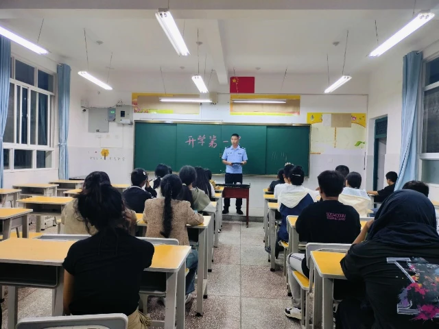 城北派出所民警到辖区云南冶金高级技工学校临安校区开展2024秋季“开学第一课”,从防电信网络诈骗、防校园欺凌、预防未成年人犯罪、毒品宣传四个方面开展法治讲座。法治副校长用通俗易懂、深入浅出的语言为同学们普及、讲解法治安全及校园安全知识,围绕未成年人保护法、预防未成年人犯罪法等法律法规,引导同学们提升自身法治意识,自觉抵制不良行为。并向学生展示毒品仿真模型,科普毒品类型、特征及危害,呼吁学生远离毒品,筑牢青春无毒防火墙。