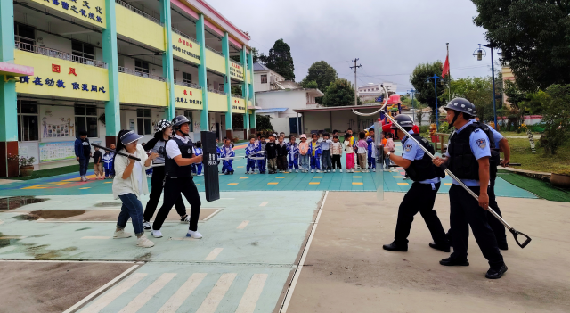 坡头派出所联合坡头乡中心校,到民族小学、中心幼儿园开展“警校联动”防恐防暴演练,提升校园安全防护力量。演练前,组织坡头乡民族小学、中心幼儿园分管安全副校长,安全员,保安和护校队共12人进行防恐防暴知识技能集中学习教育培训,就当前安全形势进行全面客观的分析研判,结合典型案例,剖析了当前防恐防暴等校园安全态势,就如何做实做好校园防恐防暴工作进行了全面细致的分析和讲解,并对如何使用防刺背心、喷雾剂、防护盾牌、胶棒等安保防卫器械器材进行讲解示范,有效提高校园自身应对突发事件的处置能力和协作能力。