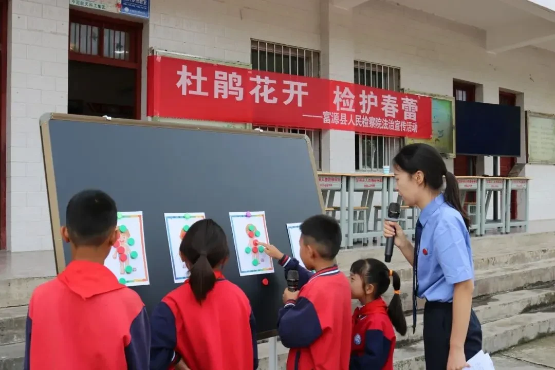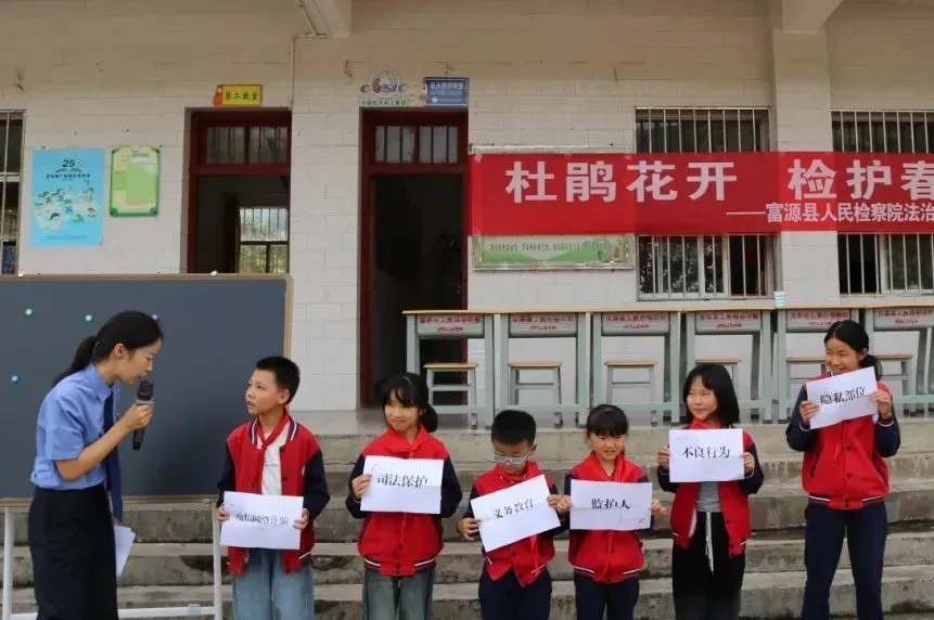 近日,曲靖市富源县法学会联合富源县人民检察院“杜鹃花”未检团队走进营上镇茂河小学,开展形式多元、内容丰富的普法宣传教育活动,引导未成年人以法为基、循法而进、明法善用,让未成年人在法治暖阳的呵护下健康成长。