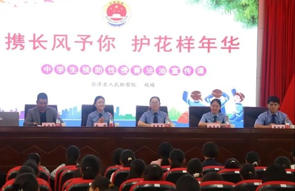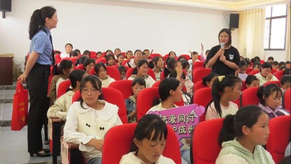 为进一步提高广大未成年人法治意识和自我保护意识,近日,曲靖市会泽县法学会联合县人民检察院到大桥中学,为初一年级的女生们举办了一堂专属法治宣传教育活动。