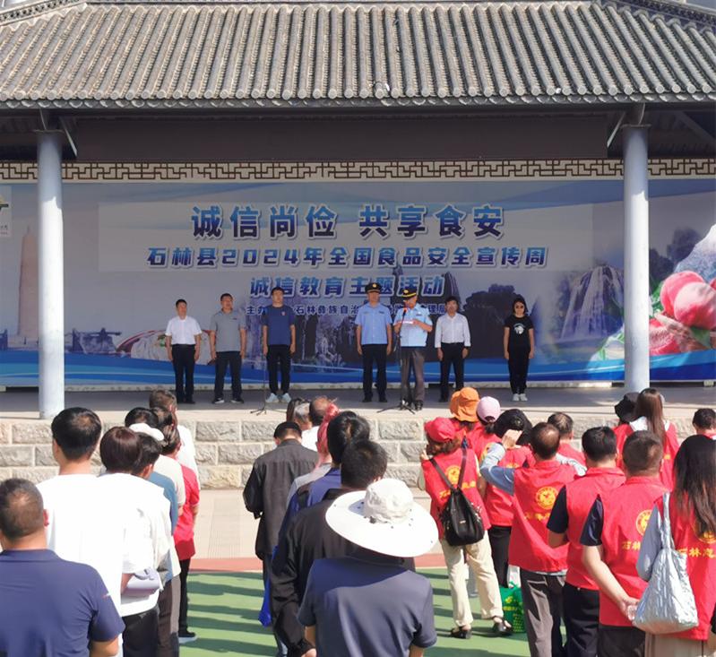 为进一步普及食品安全法律知识,提高群众食品安全意识,9月20日,昆明市石林县法学会利用“赶大街”的日子,在人员集中的板桥街道开展以“诚信尚俭 共享食安”为主题的食品安全宣传活动。