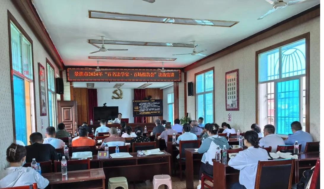 景洪市人民法院行政审判庭庭长、云南言律律师事务所律师为景哈乡党委、政府班子成员、乡综合执法队全体人员、乡派出所、乡司法所、乡市场监管所、勐罕交警中队开展“百名法学家 百场报告会”宣讲活动。