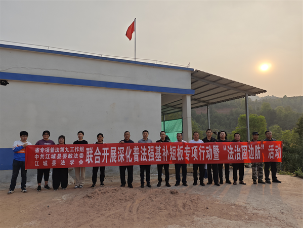 近年来,普洱市江城县法学会扎实推动“强三性”“去四化”工作,主动融入和服务政法工作大局,积极为政法工作建言献策、添砖加瓦,切实保持和增强法学会的政治性、先进性、群众性。面对江城县“一城连三国”边境线狭长、人口结构复杂、边民法治意识淡薄等基层社会治理问题,江城县法学会坚持党建引领,践行“三法三化”,探索“共建+普法”边境治理新路径,不断解锁基层治理“新密码”。