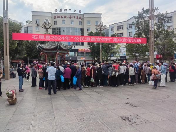 近日,红河州石屏县法学会联合县公安局交警大队开展“公民道德宣传日”活动,组织民辅警前往工会广场向广大群众普及交通安全知识,传递安全文明出行理念。