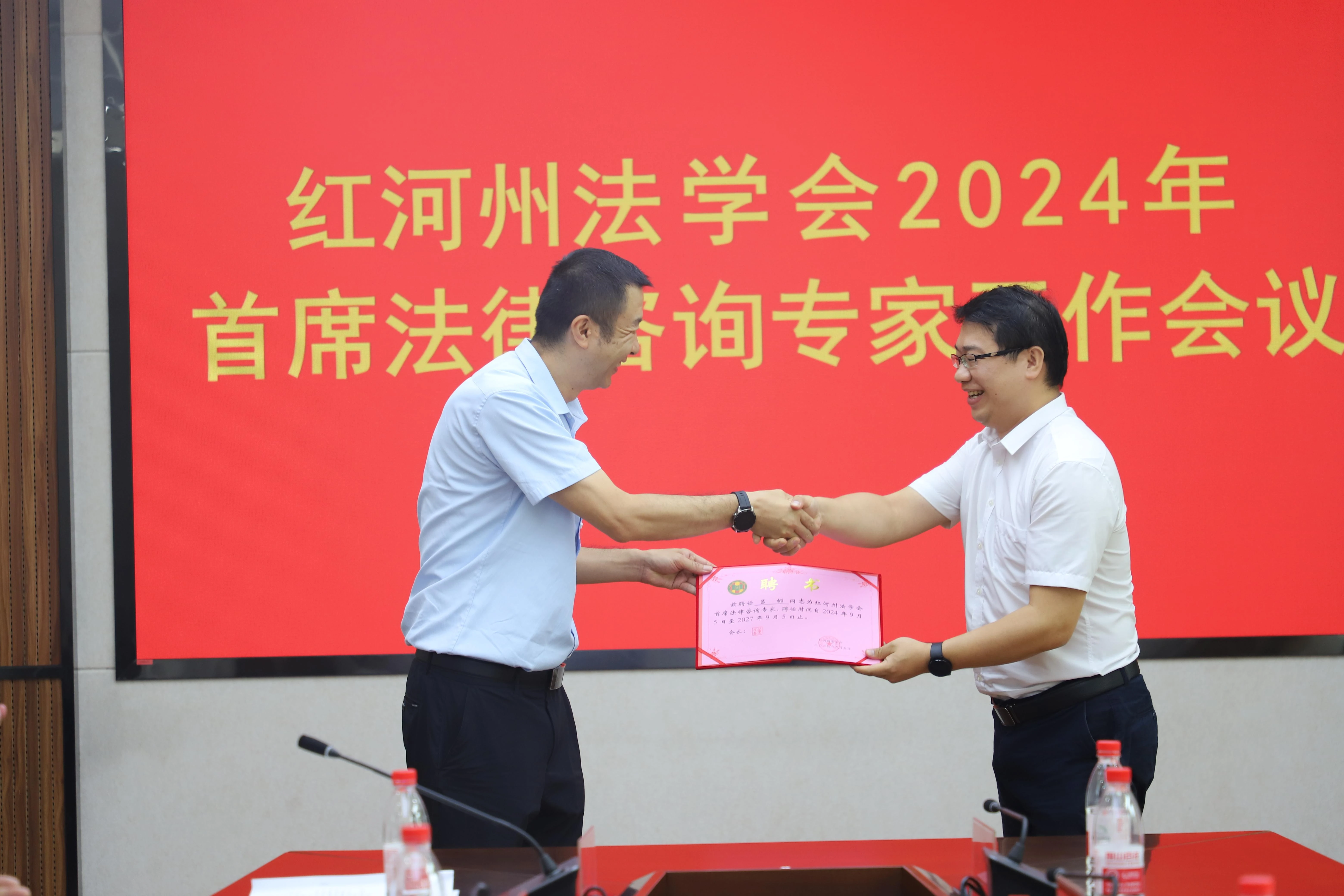 9月30日,红河州法学会在蒙自市召开2024年首席法律咨询专家工作会议,研究下一阶段重点工作任务。州委政法委副书记、州法学会副会长李勋主持会议并讲话,首期入库州法学会首席法律咨询专家库的专家参会。