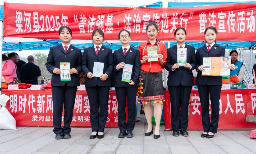 阿露窝罗节是阿昌族的重要传统节日,承载着深厚的民族文化和历史记忆。3月19日至20日,德宏州梁河县阿露窝罗节在梁河县体育公园隆重举行,活动现场人头攒动,热闹非凡,身着民族盛装的群众汇聚一堂,沉浸在载歌载舞的欢乐氛围里。梁河县委政法委、县法学会联合法院、检察院、公安、司法等部门普法宣传员积极融入节日氛围,为群众送上“法律盛宴”,让法治精神与民族文化交相辉映,展现了法治为民的初心与担当。