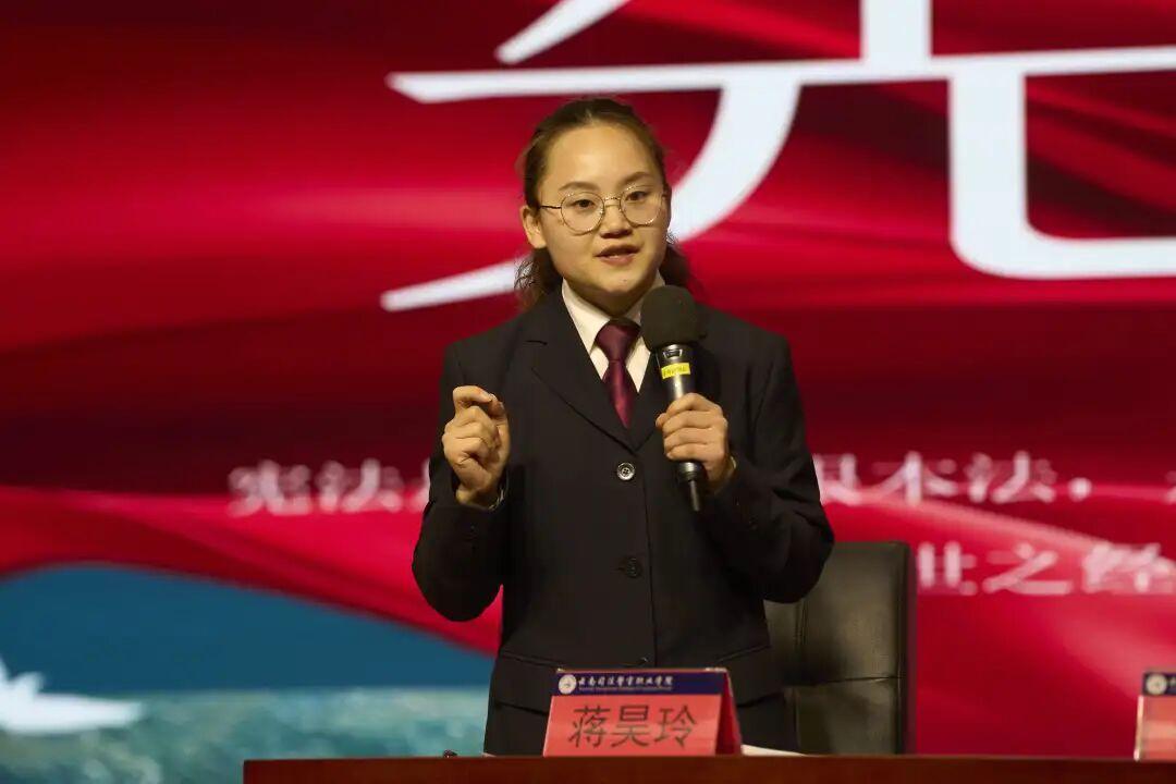 为大力弘扬宪法精神,深入学习宣传习近平法治思想,12月3日,昆明市嵩明县“检义”宣讲团成员、县法学会普法志愿者应邀到云南司法警官职业学院为100余名学生开展法治宣讲。