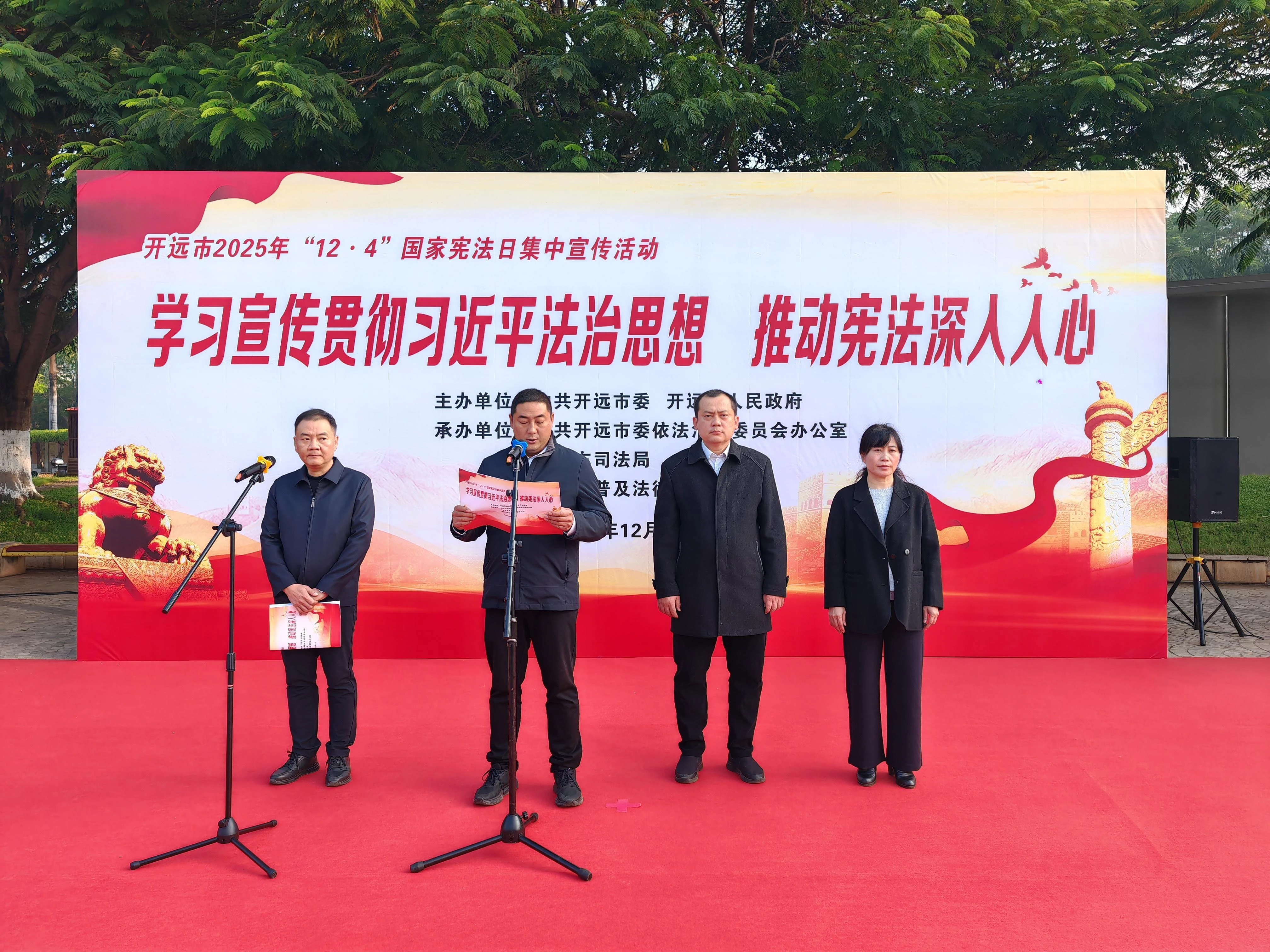 12月4日,红河州开远市以“学习宣传贯彻习近平法治思想,推动宪法深入人心”为主题,在迎旭广场举行“12·4”国家宪法日暨“宪法宣传周”集中宣传活动。
