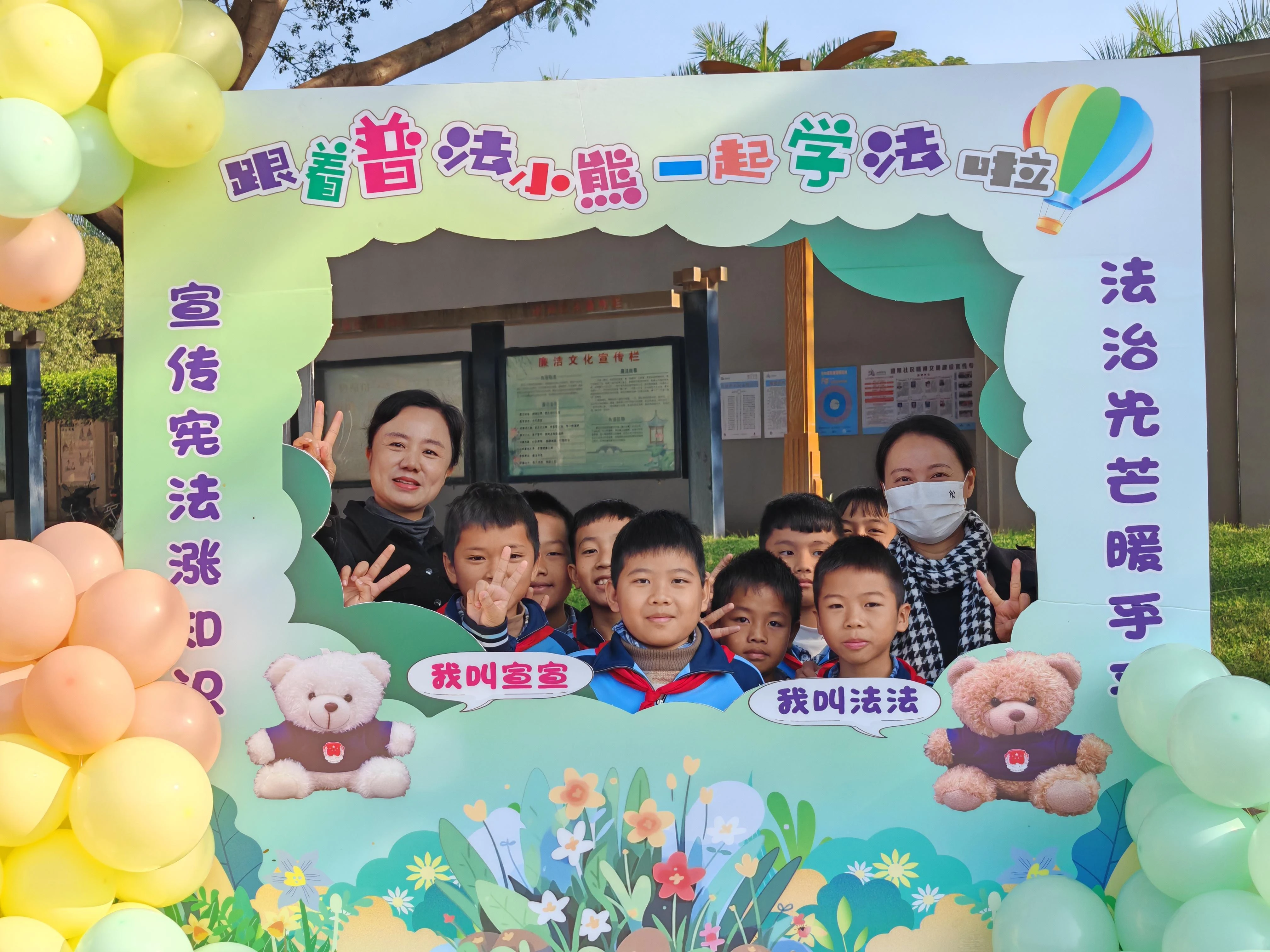 活动现场还设置了生动活泼的普法小熊拍照打卡点,学生和过往群众相约打卡拍照,深受广大群众喜爱。