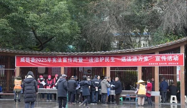近日,昭通市威信县多家部门联合在体育馆广场举办2025年“宪法宣传周”暨“法治护民生·送法进万家”主题宣传活动,县委政法委、县法学会积极参与其中。此次活动旨在通过形式多样的普法宣传,将法治知识送至街头巷尾与千家万户,着力提升全民法治素养。