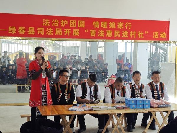近日,红河州绿春县大兴镇牛洪社区那倮果居民小组200余名出嫁姑娘身着民族盛装回到娘家共叙亲情。绿春县法学会会员单位绿春县司法局以此次民俗活动为契机,组建“双语”普法队,把法治服务送到团圆现场,让法治温情守护万家平安团圆。