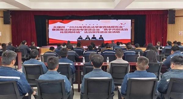 近日,大理州2026年“百名法学家百场报告会”暨法治宣讲进企业活动在鹤庆县举办。大理州、鹤庆县政法各单位,大理州、鹤庆县法学会和工商联相关负责人以及6家产业园区企业代表参加活动。