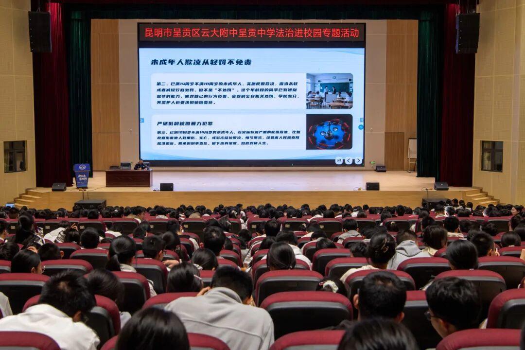 为深入推进青少年法治宣传教育,筑牢校园安全防线,近日,昆明市呈贡区法学会联合昆明市公安局呈贡分局,在云南大学附属中学呈贡中学开展“法治护航成长・安全伴我同行”法治安全教育进校园活动。