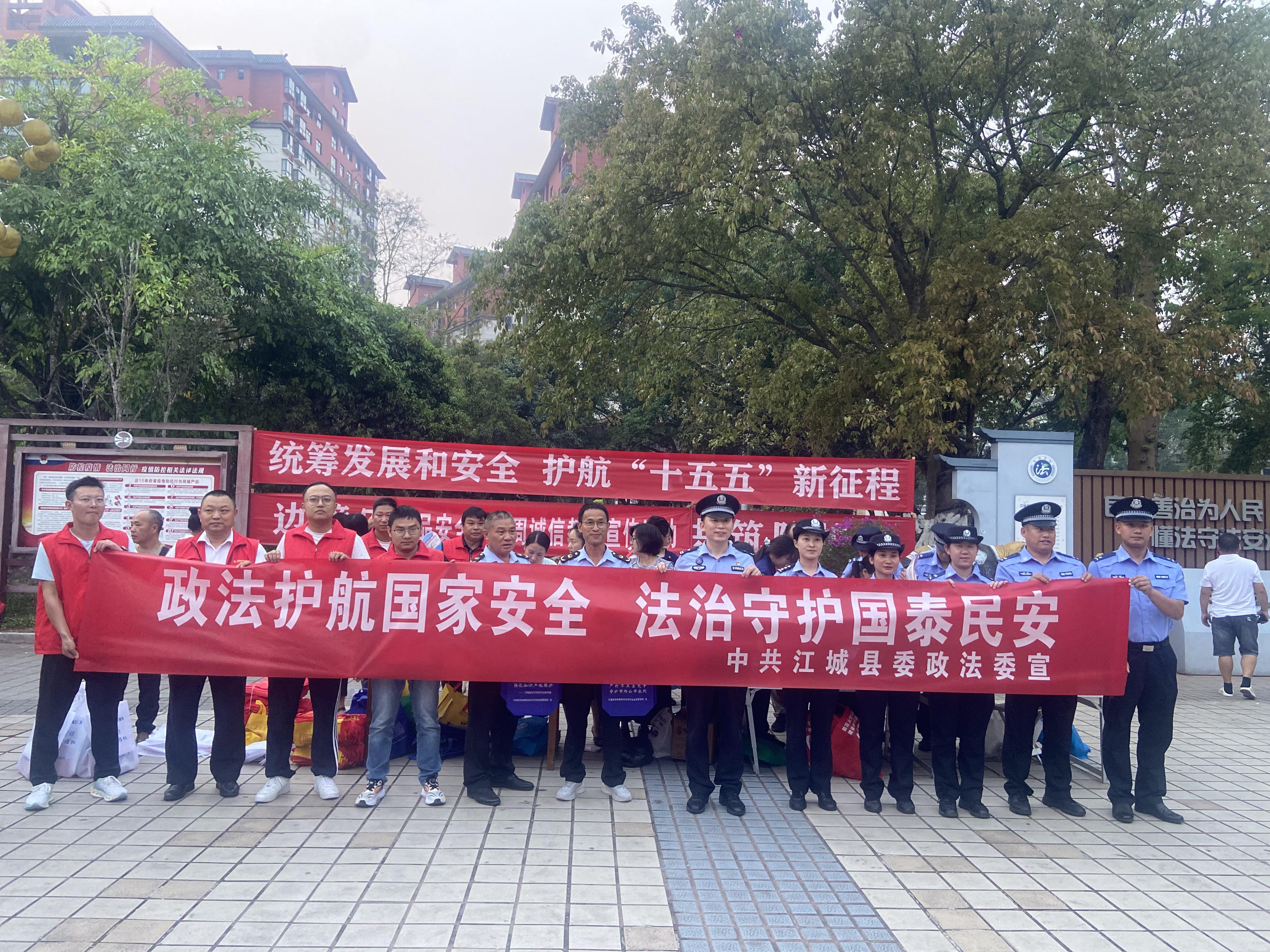 为深入贯彻落实总体国家安全观,切实增强全民国家安全意识,普洱市江城县委政法委牵头联合法学会各理事成员单位,紧扣“统筹发展和安全 护航‘十五五’新征程”主题,组织政法干警、志愿者在城区广场开展全民国家安全教育日法治宣传活动。