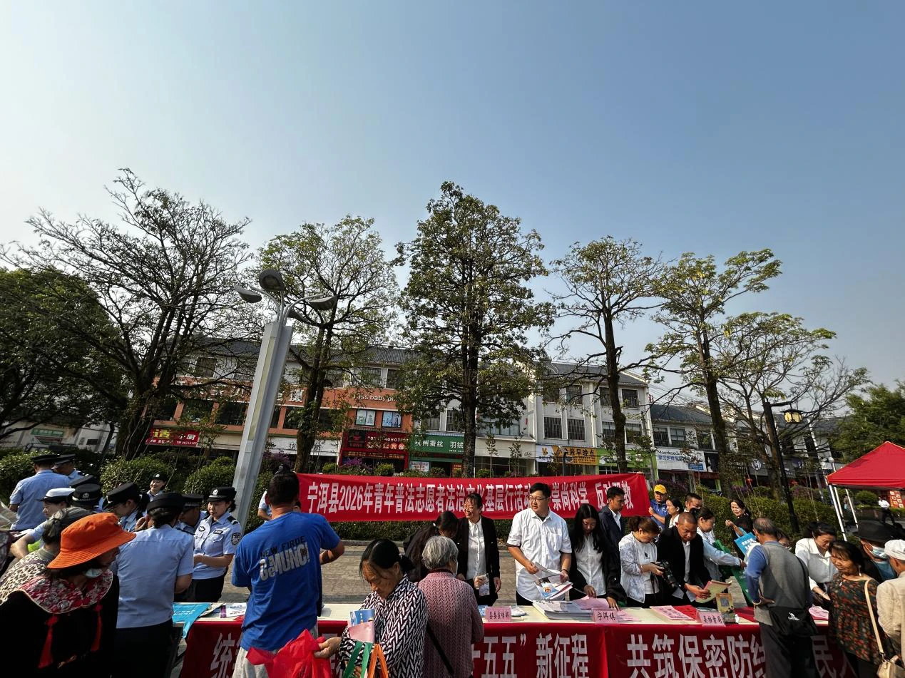 2026年4月15日是第十一个全民国家安全教育日。当日上午,普洱市宁洱县法学会30余名青年普法志愿者在茶园广场参加“统筹发展和安全 护航‘十五五’新征程”主题法治宣传活动。