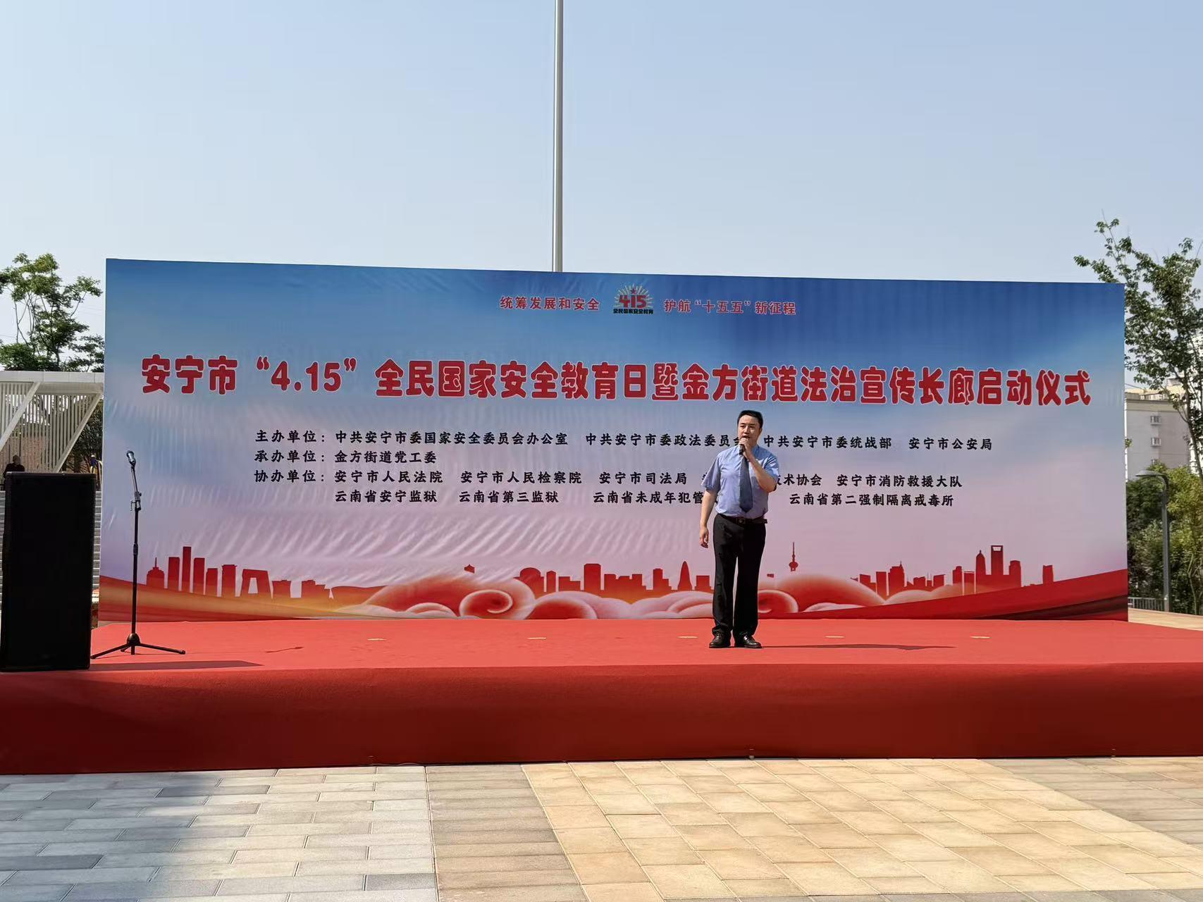 在第十一个全民国家安全教育日到来之际,昆明市安宁市“4·15”全民国家安全教育日暨金方街道法治宣传长廊启动仪式系列活动在安宁市金方街道市民广场举行。